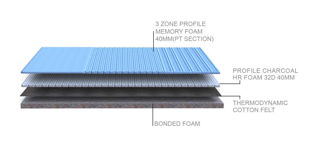 • Memory foam forms the topmost layer, It gives good support to all the contours of the body.