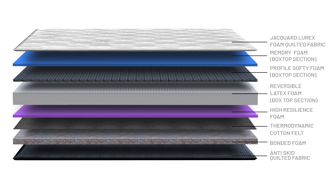 - Box Top section is a combination of memory & super soft foam which gives the mattress a luxurious and gentle feel.